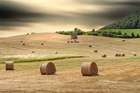 Italië Toscane hooibalen in het landschap. Een natuurbeeld van een landschap in zuid-Toscane. In het hart van Italië prijkt Toscane met haar adembenemende landschappen. Golvende heuvels bedekt met eindeloze wijngaarden, oude olijfgaarden en schilderachtige cipressen. Charmante dorpjes met geplaveide straatjes nestelen zich tussen…