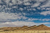 langs de weg in namibie zie de meest prachtige landschappen met vaak een fantastische wolkenlucht. Je rijdt over de zand of gravel wegen door het namib nakluft park, de namib desert in een totaal verlaten landschap