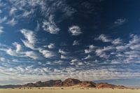 Langs de weg in namibië, along the road in namibia zie je de mooiste landschappen en vergezichten in een totaal verlaten landschap. De woestijn sterkt zich uit zover je kan kijken onder een prachtige wolkenlucht en een strak blauwe hemel.