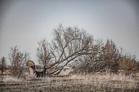 friesland, een omgevallen boom in het lauwersmeergebied.
