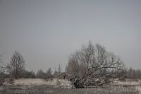 omgevallen boom in het lauwersmeergebied in friesland,