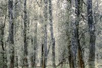 bomen in de ooijpolder, foto genomen met dubbele belichting zodat er een extra laag in de foto ontstaat.