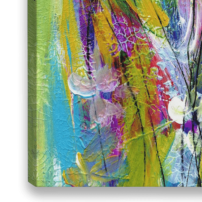 Een kleurrijk en expressief bloemenbeeld voor het woongedeelte. Het straalt optimisme en vrolijkheid uit. De schoonheid van de natuur biedt steeds weer onuitputtelijke inspiratiebronnen. Bloemenfantasieën zijn kunstzinnig geënsceneerd... bloemen, bloesems, bladeren...
