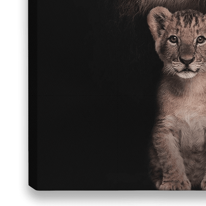 Leeuwen gezin met welpjes, een mooi werk van licht en schaduwen. een prachtig werk voor een gezin met twee kinderen. Dit werk is van hoge kwaliteit