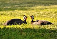zonnende parelhoenders