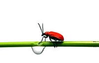 een rood leliehaantje met waterdruppel