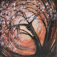 Kersenbloesem, siertuin, japan, aziatisch, krachtbeeld, energiebeeld, inspirerend, spiritueel, fantasie, magisch, abstract, schilderij, kunst, plantkunde, natuur, flora, bloesems, bloemenmagie, dromerig, seizoenen, bruin, kleurrijk, vierkant, stormachtig, storm,