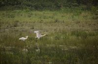 Een prachtige vogel aan de waterkant. Foeragerend met zijn bestek, schuimt ze het ondiepe water af. Zoals op deze foto te zien, is de gevangen prooi, een kikker, niet vanzelfsprekend dat die verorberd kan worden. Hij/zij zal al rennend en vliegend de kikker moeten verdedigen, er liggen vele kapers op de kust.