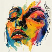 Koop dit abstracte kunstwerk levendig beschilderd vrouwelijk gezicht van PixelPrestige als print op canvas, aluminium dibond, (ingelijste) fotoprint, behang en ArtFrame. Voor jou op maat geprint in Fine-Art kwaliteit.