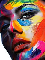 Koop dit abstracte kunstwerk levendig beschilderd vrouwelijk gezicht van PixelPrestige als print op canvas, aluminium dibond, (ingelijste) fotoprint, behang en ArtFrame. Voor jou op maat geprint in Fine-Art kwaliteit.
