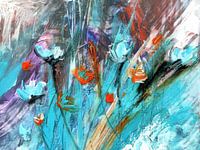 Bloemenschilderij in acrylverf en grafische elementen. Een kleurrijk en expressief bloemenschilderij voor de woonruimte. Het straalt optimisme en vrolijkheid uit. De schoonheid van de natuur biedt altijd onuitputtelijke bronnen van inspiratie. Bloemenfantasieën zijn kunstig geënsceneerd. ....