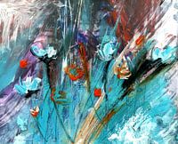 Bloemenschilderij in acrylverf en grafische elementen. Een kleurrijk en expressief bloemenschilderij voor de woonruimte. Het straalt optimisme en vrolijkheid uit. De schoonheid van de natuur biedt altijd onuitputtelijke bronnen van inspiratie. Bloemenfantasieën zijn kunstig geënsceneerd. ....