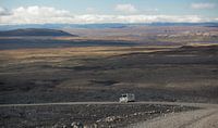 Op de barse ijslandse hoogvlaktes, waar de wegen slecht zijn en daarbij gesloten in de wintermaanden kom je slechts sporadisch een auto tegen. Deze enkele auto benadrukt de leegte van het landschap