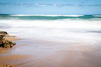 De Indische oceaan langs de Zuid-Afrikaanse kust is een wilde kust waar haaien leven en door de sterke stroming niet gezwommen kan worden. Deze afbeelding laat zien de schoonheid van de natuur ondanks de gevaren van de kust.