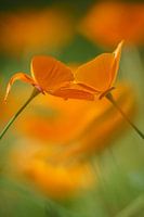 Twee oranje papavers die zich als een verliefd stelletje gedragen. Ook in de natuur vind je liefde.