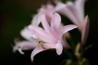 close up van de meeldraad van de Lycoris, een zacht roze zomerbloeiende plant