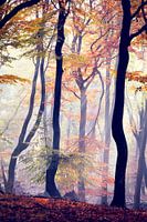 in een beukenbos op de Veluwe ( dichtbij Vierhouten) , het was nog wat mistig en de zon kwam net door... een prachtig gezicht! de grillige vormen van de stammen en takken maken het plaatje helemaal mooi!