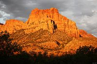 Rotsformatie gloeiend in het avondlicht - Utah, VS.
