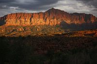 Rotsformatie gloeiend in het avondlicht - Utah, USA.