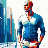 Koop dit digital art kunstwerk man met blauw shirt van Digital Art Nederland als reproductie geprint op canvas, aluminium dibond, (ingelijste) fotoprint, behang en ArtFrame. Voor jou op maat geprint in Fine-Art kwaliteit.