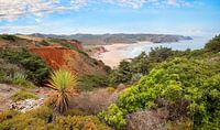 mediterraan landschap aan de kust costa vicentina, met uitzicht op het beroemde amado-strand, algarve west portugal