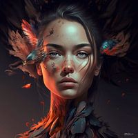 meisje gemengd met vogel