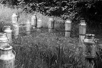 Koop de foto melkbussen compositie in zwart wit van wil spijker op canvas, aluminium dibond, (ingelijste) fotoprint, behang en ArtFrame, op maat geprint in Fine-Art kwaliteit.