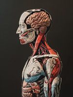 Digitaal beeld van de menselijke anatomie met name de spieren in en uitwendig die getoond worden