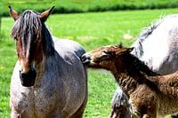 Zomaar onderweg kom je dit tafereel tegen, een veulentje die moeders een beetje uitdaagt. Ook in zwart wit is dit een mooie foto geworden.