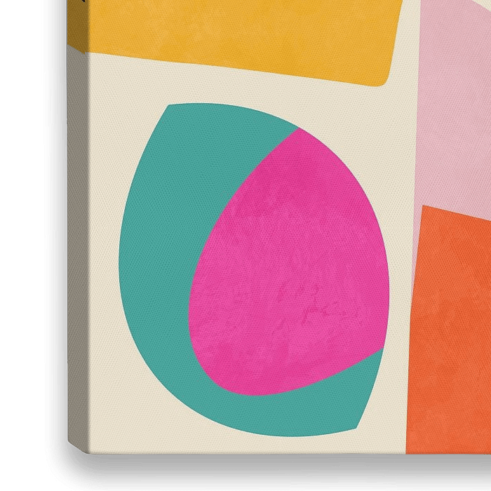 Speel met geometrische vormen. Abstracte kunst voor aan de muur, geïnspireerd op ontwerpen in Bauhaus-stijl. Soms streng, soms speels. Met schilderachtige textuur. Brengt kleur in de kamers. Zomer- en lentekleuren zorgen voor een aangename, vrolijke sfeer.