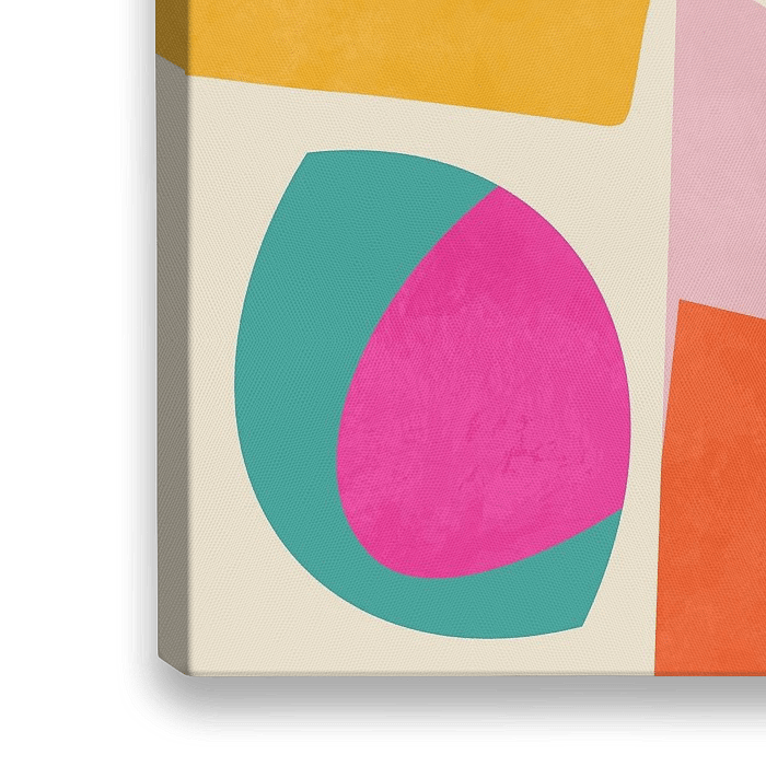 Speel met geometrische vormen. Abstracte kunst voor aan de muur, geïnspireerd op ontwerpen in Bauhaus-stijl. Soms streng, soms speels. Met schilderachtige textuur. Brengt kleur in de kamers. Zomer- en lentekleuren zorgen voor een aangename, vrolijke sfeer.