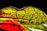 Bewerkte fotografie - collage. Macrofotografie van een blad, gefascineerd door de kleuren van de natuur.