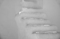 Prachtige contrasten in Griekenland. Een eenvoudig weergegeven stenen trap in grijze tinten en licht beschenen door de zon. Een minimalistisch fotokunstwerk dat in een modern interieur zeker tot zijn recht komt.