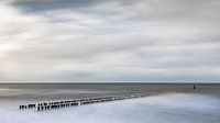 Lange sluitertijd van een paalhoofd bij opkomend water tussen Westkapelle en Domburg.