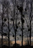 mistletoe of maretak bollen vaak ten onrechte aangezien voor vogelnesten in een rij bomen (populieren) langs de A2 richting Maastricht tegenover het vliegveld bij het dorpje Moorveld in Zuid Limburg.