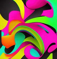 modern beeld met felle kleuren in roze, geel en groen dit beeld vraagt in alle ruimtes de aandacht .