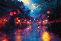 oosterse japanse kleurrijke neon moderne kunst met fictieve verzonnen personen en of locatie