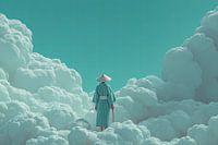 fantasierijke fictieve japanse kunst met Geisha in de wolken