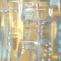 Acryl en inkt - een speciale techniek creëert een ruimtelijke diepte die de elementen laat zweven.