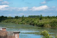 zicht vanop de Moerputtenbrug over het moeras vol waterlelies