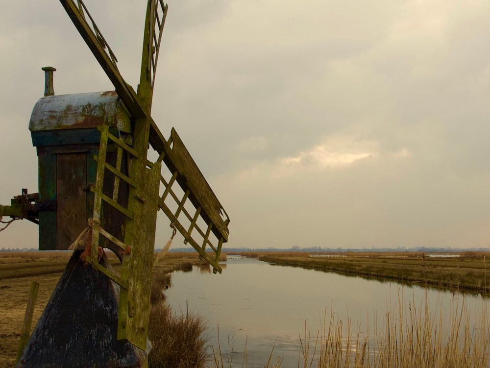 oud molentje aan de oostkant van Jisp en je kijkt naar Zaandam.
