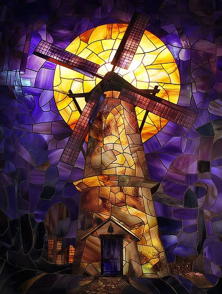 Koop dit abstracte kunstwerk molen door zon beschenen als glas in lood kunstwerk van Margriet Hulsker als print op canvas, aluminium dibond, (ingelijste) fotoprint, behang en ArtFrame. Voor jou op maat geprint in Fine-Art kwaliteit.