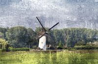 een mooie witte molen in een oer Hollands landschap. Deze print met de uitstraling van een schilderij doet het goed in ieder interieur.