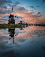 Deze foto van de kinderdijk met z'n mooie molens is gemaakt na een regachtige dag. De zon kwam er voor dat hij onderging nog net even door en gaf de wolken een fraaie kleur! De spiegeling in het water was een extra kadootje.