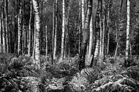 zwart wit weergave van een berkenbos in de belgische hoge venen in de late herfst