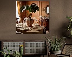 monstera geplaatst in de woonkamer met een klassieke sfeer