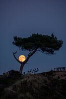 Prachtige maan opkomst! Tussen het meest bekende boompje van Terschelling