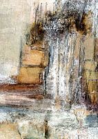 ...een spel met kleuren en materialen, jezelf laten drijven - leidt tot een subtiel spel van vormen, contrasten en vervormingen...scheuren en depressies tonen een spannend spectrum tussen worden en vergaan...