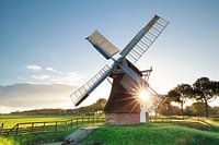 morning summer sunshine behind Dutch windmill, Groningen, Netherlands
