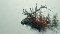 Toen Emma deze foto's combineerde, gebeurde er iets magisch. Het hert leek nu één te zijn met het bos. Zijn silhouet werd gevuld met de kronkelende takken en het zachte licht van de bomen, waardoor het leek alsof het hert en het bos ademden als één wezen.